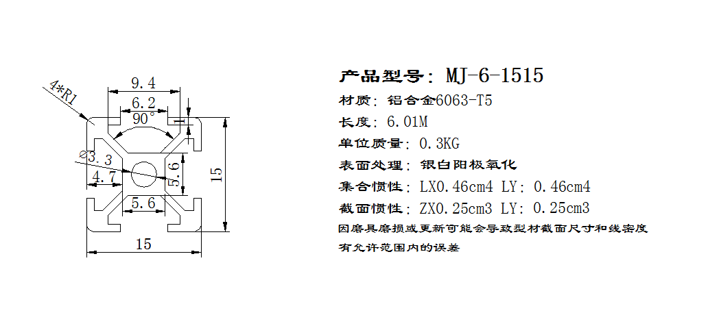 我們有15-120系列常用鋁型材(6米/支),可零賣也可整賣,免費(fèi)提供樣品樣冊,并且承接設(shè)計(jì)圖紙定做加工各類工業(yè)自動化設(shè)備框架、圍欄、工作臺、機(jī)架、防護(hù)罩、流水線支架、貨架、展架、免費(fèi)切割,打孔,攻絲,切角,配件齊全,另有進(jìn)口擠壓生產(chǎn)設(shè)備和CNC加工設(shè)備,加工非標(biāo)鋁件,定做各類尺寸異型材,詳情請聯(lián)系工作人員!全國服務(wù)熱線:021-54339585
